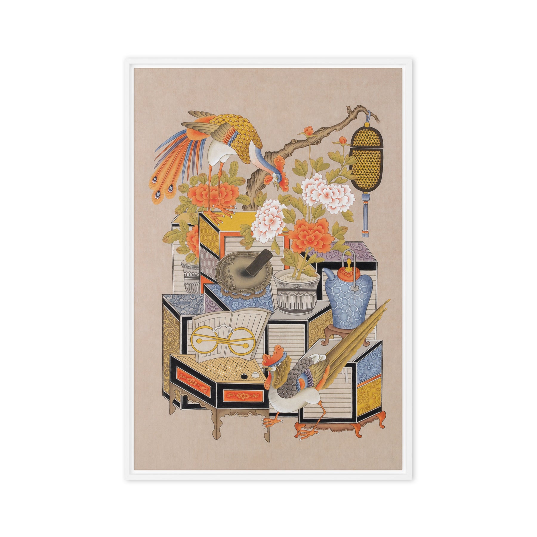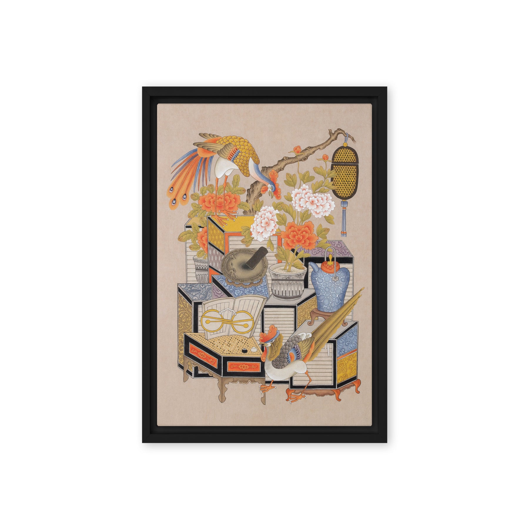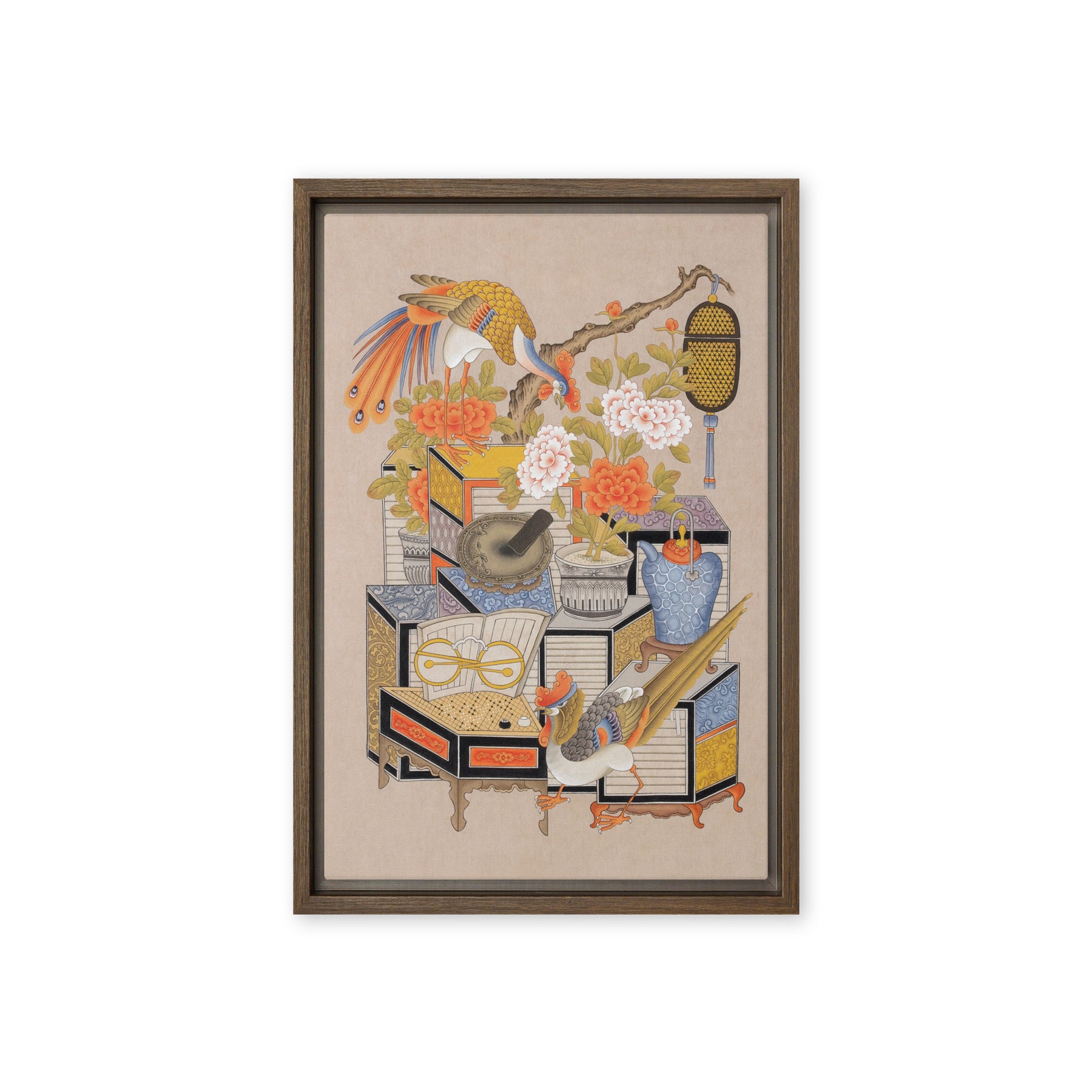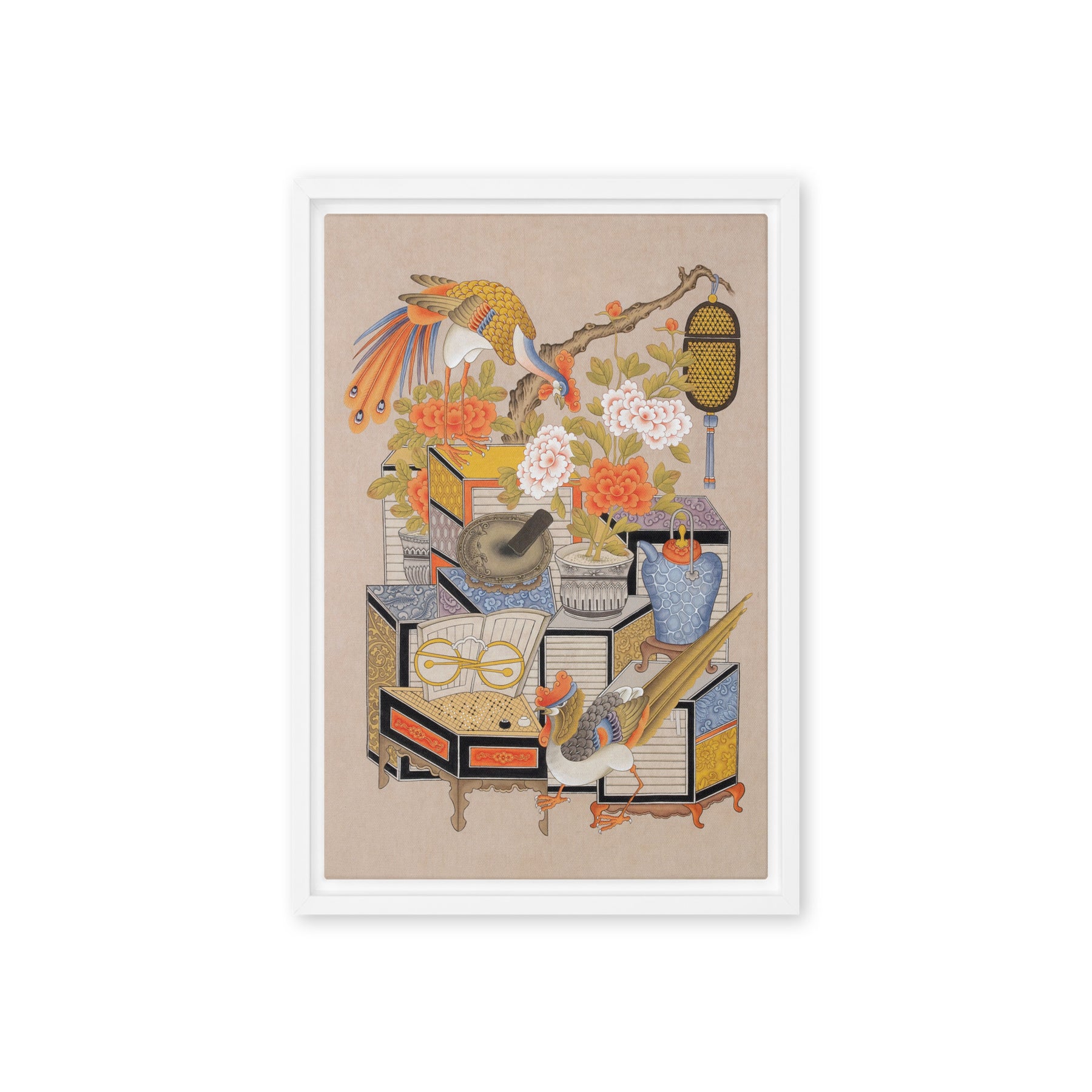 Die gerahmte Leinwand aus Kiefernholz hat Gummipolster an den Ecken, eine vormontierte Wandhalterung und einen schwebenden Rahmen für mühelose Eleganz.