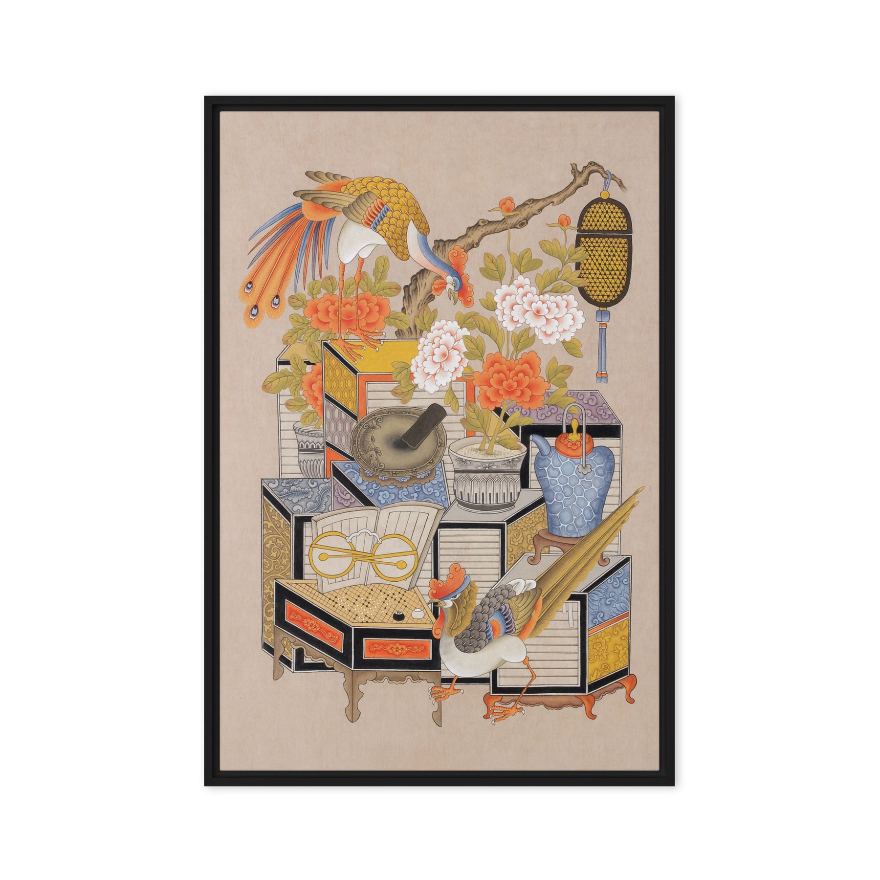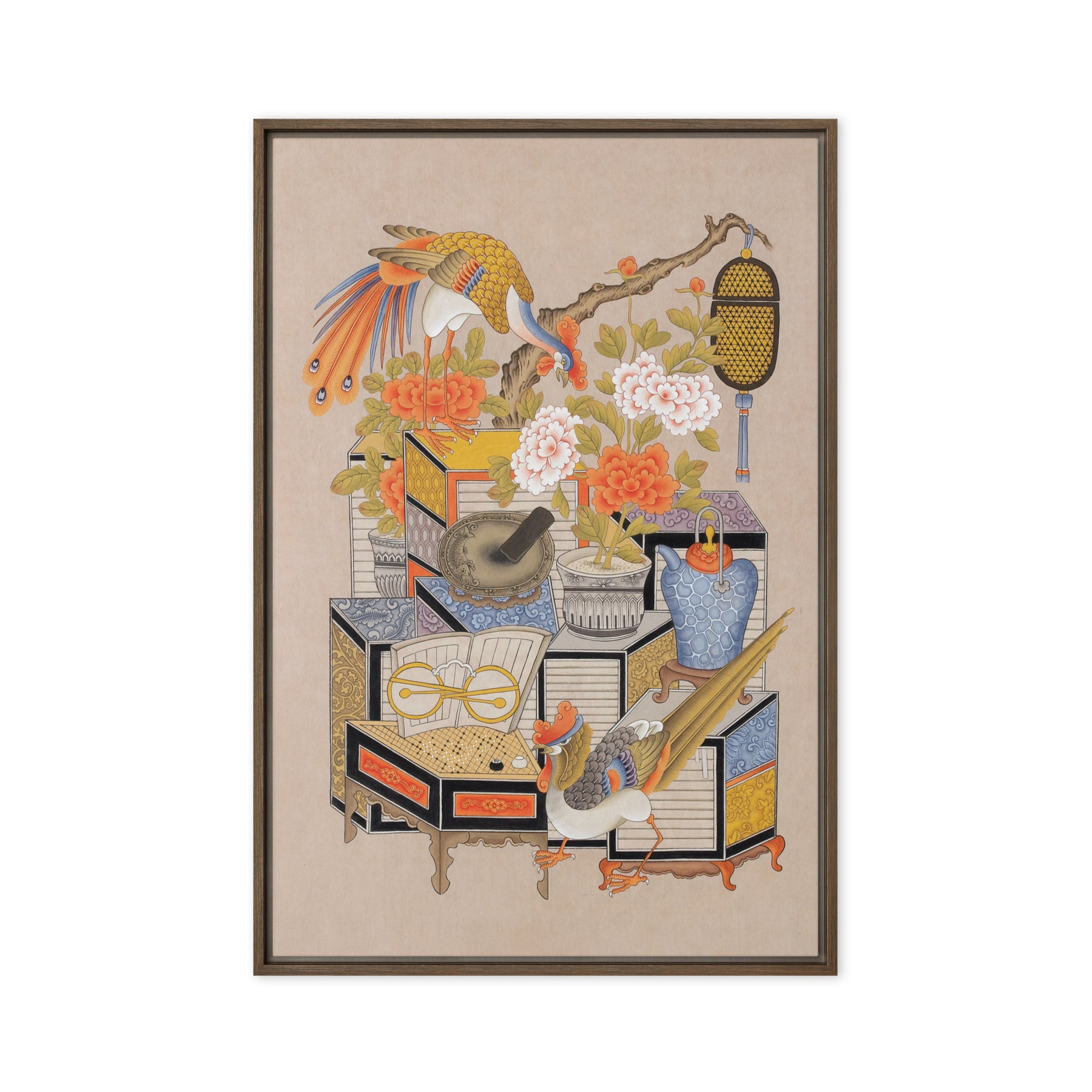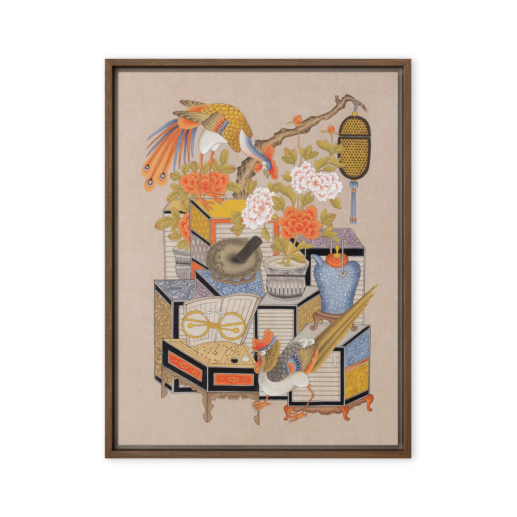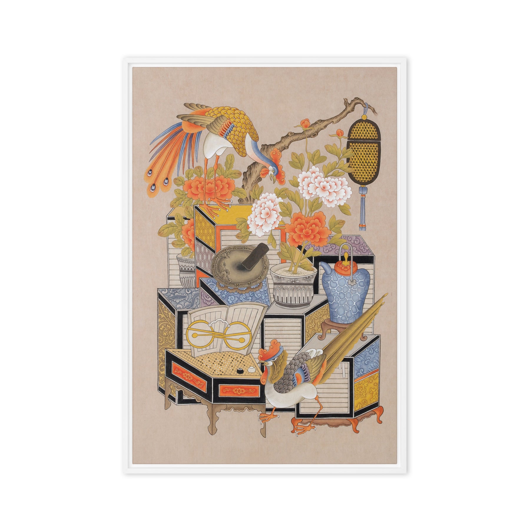 Die gerahmte Leinwand aus Kiefernholz hat Gummipolster an den Ecken, eine vormontierte Wandhalterung und einen schwebenden Rahmen für mühelose Eleganz.