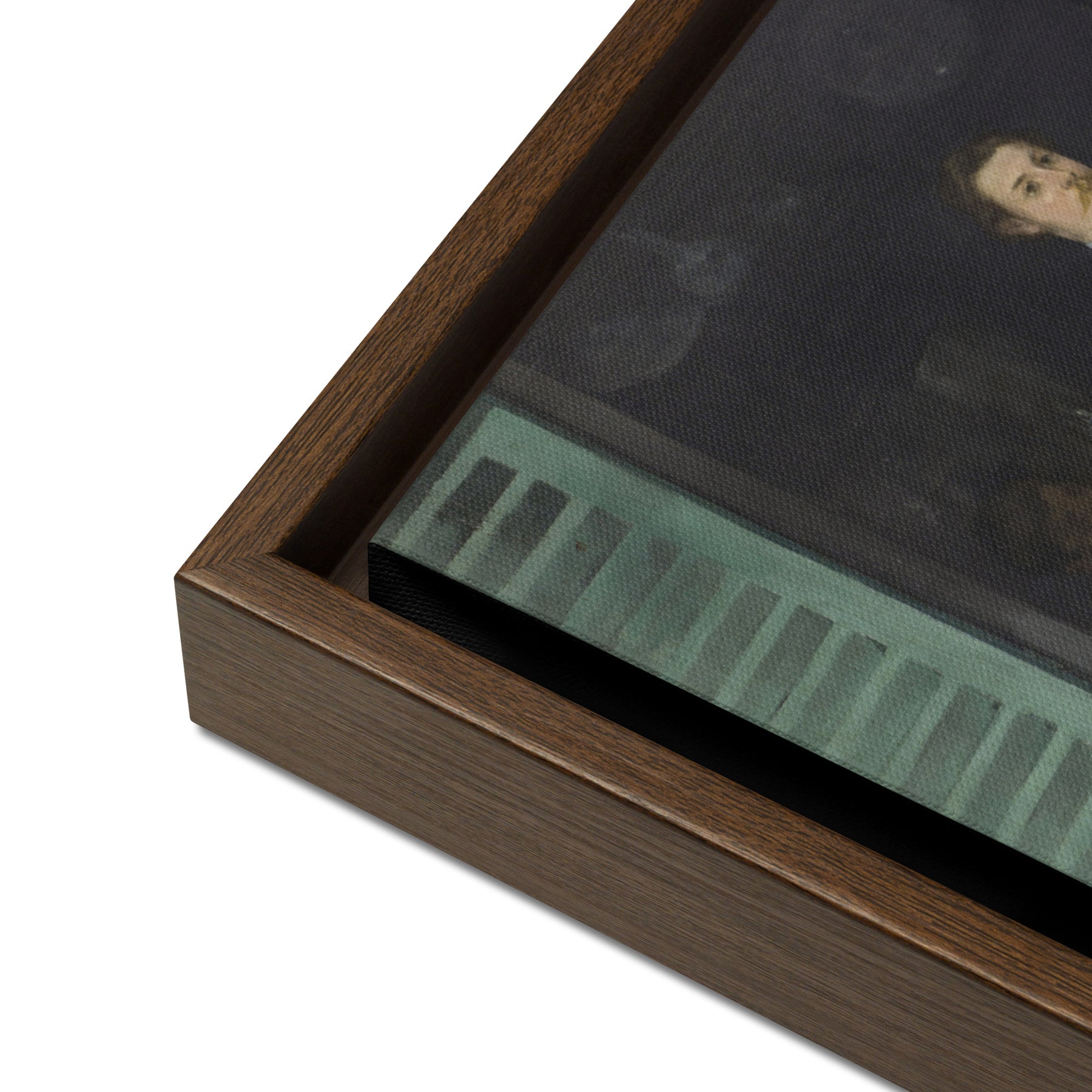 Die gerahmte Leinwand aus Kiefernholz hat Gummipolster an den Ecken, eine vormontierte Wandhalterung und einen schwebenden Rahmen für mühelose Eleganz.