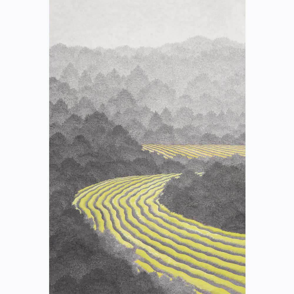 Mi trabajo comienza con la memoria de los innumerables paisajes que he visto pasar por la ventanilla del coche en el pasado. Todos estos recuerdos se acumulan en mi mente y, junto con mis emociones actuales, crean un lugar nuevo. Aprovechando la energía y la vitalidad de la naturaleza, intento darle forma a este fantástico lugar. La energía y vitalidad de la naturaleza son el comienzo de la vida y me permiten sentir plenamente mi existencia.