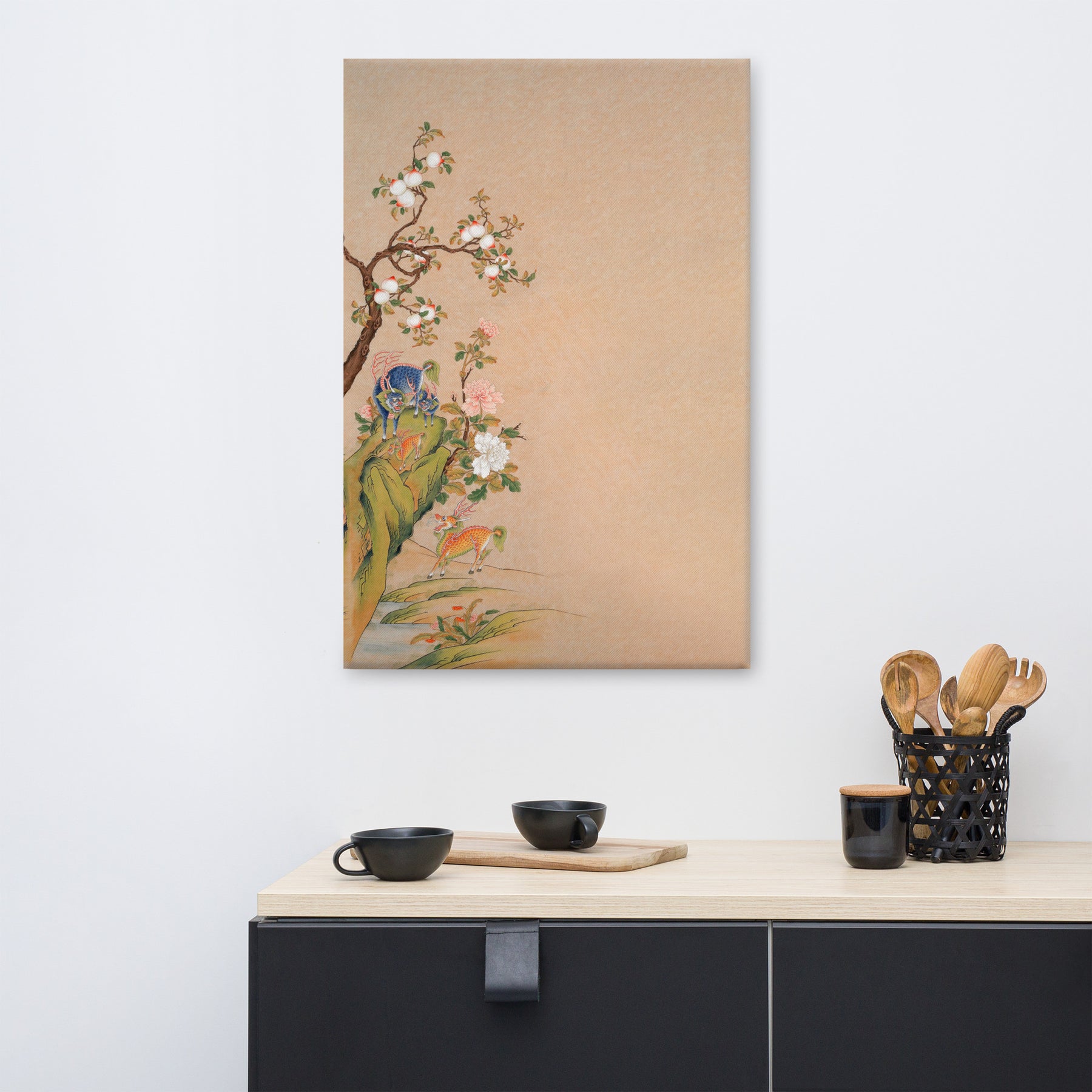 Auf der Suche nach etwas Flair für dein Büro oder Zuhause? Deine Suche hat ein Ende! Dieser Leinwanddruck  - Phantastische Tierwesen des Glücks und der Harmonie, links von Seungmin Yoon mit lebvollen und ausbleichresistenten Farben sticht sicherlich ins Auge.