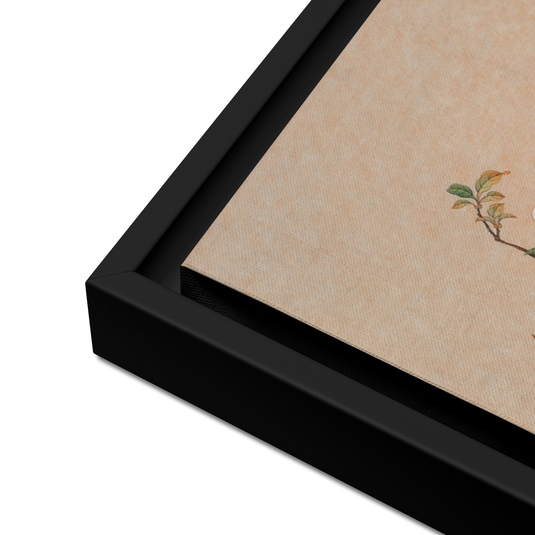 - Die gerahmten Leinwände mit braunen und schwarzen Rahmen haben eine schwarze Innenseite um die Leinwand und die Leinwände mit weißen Rahmen haben eine weiße Innenseite um die Leinwand.