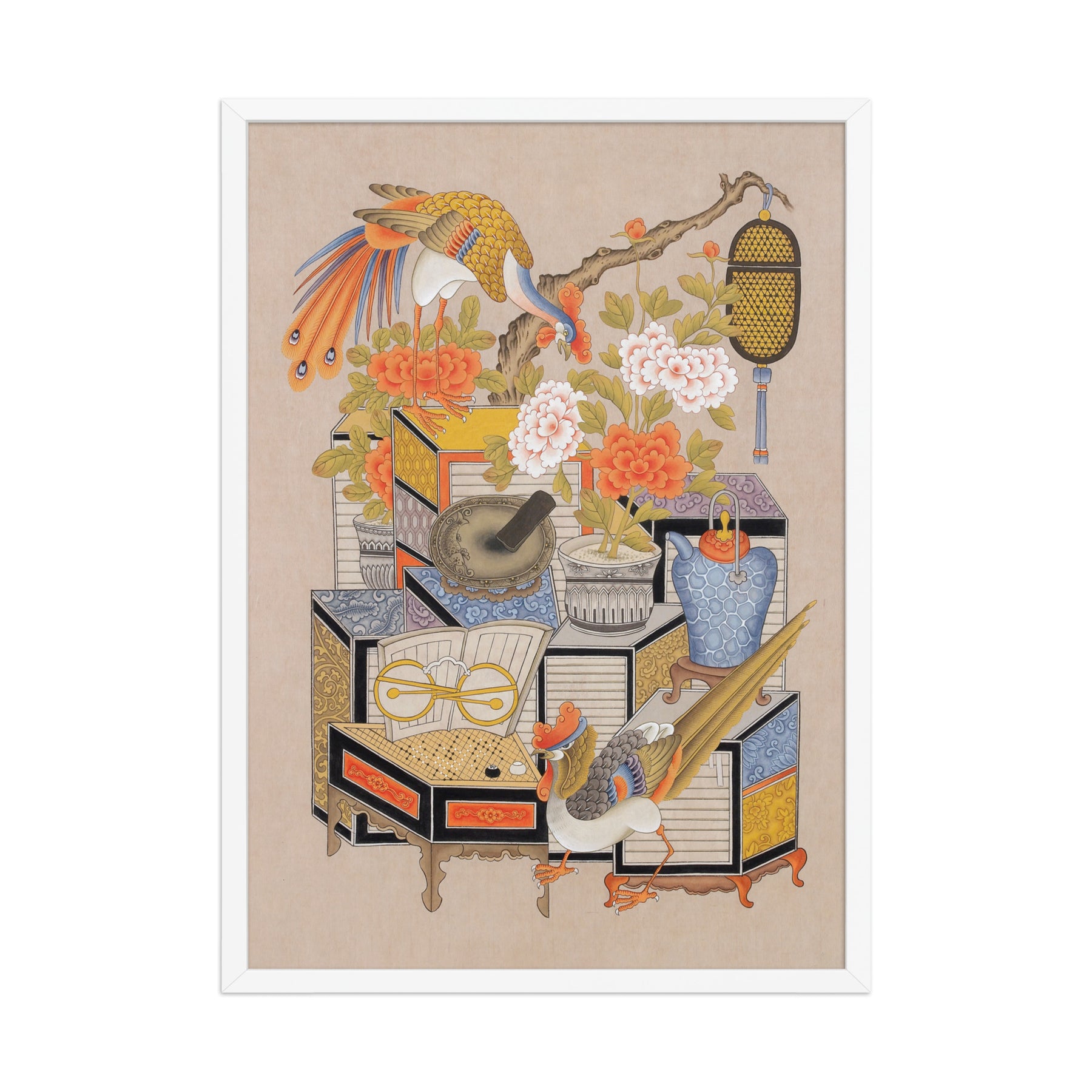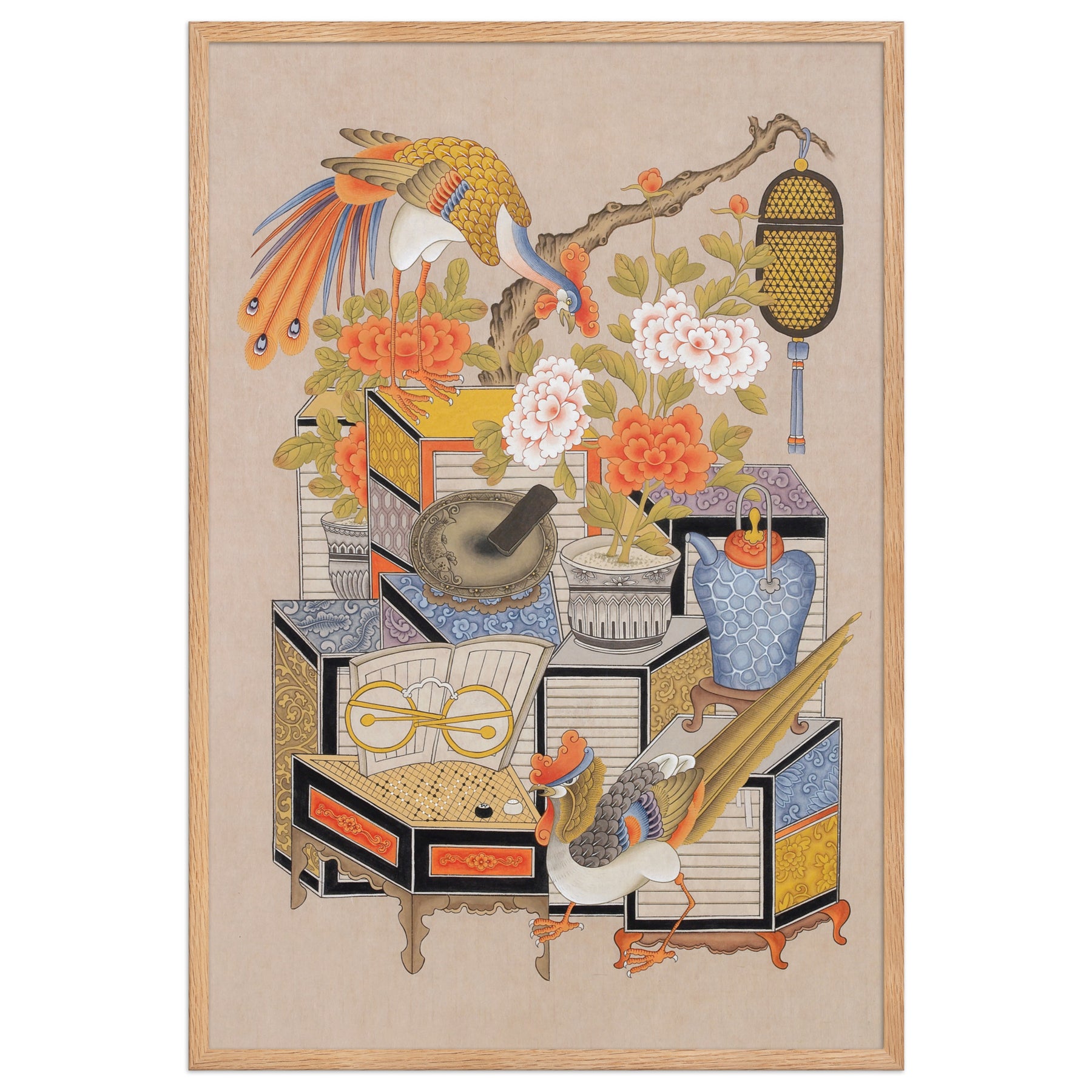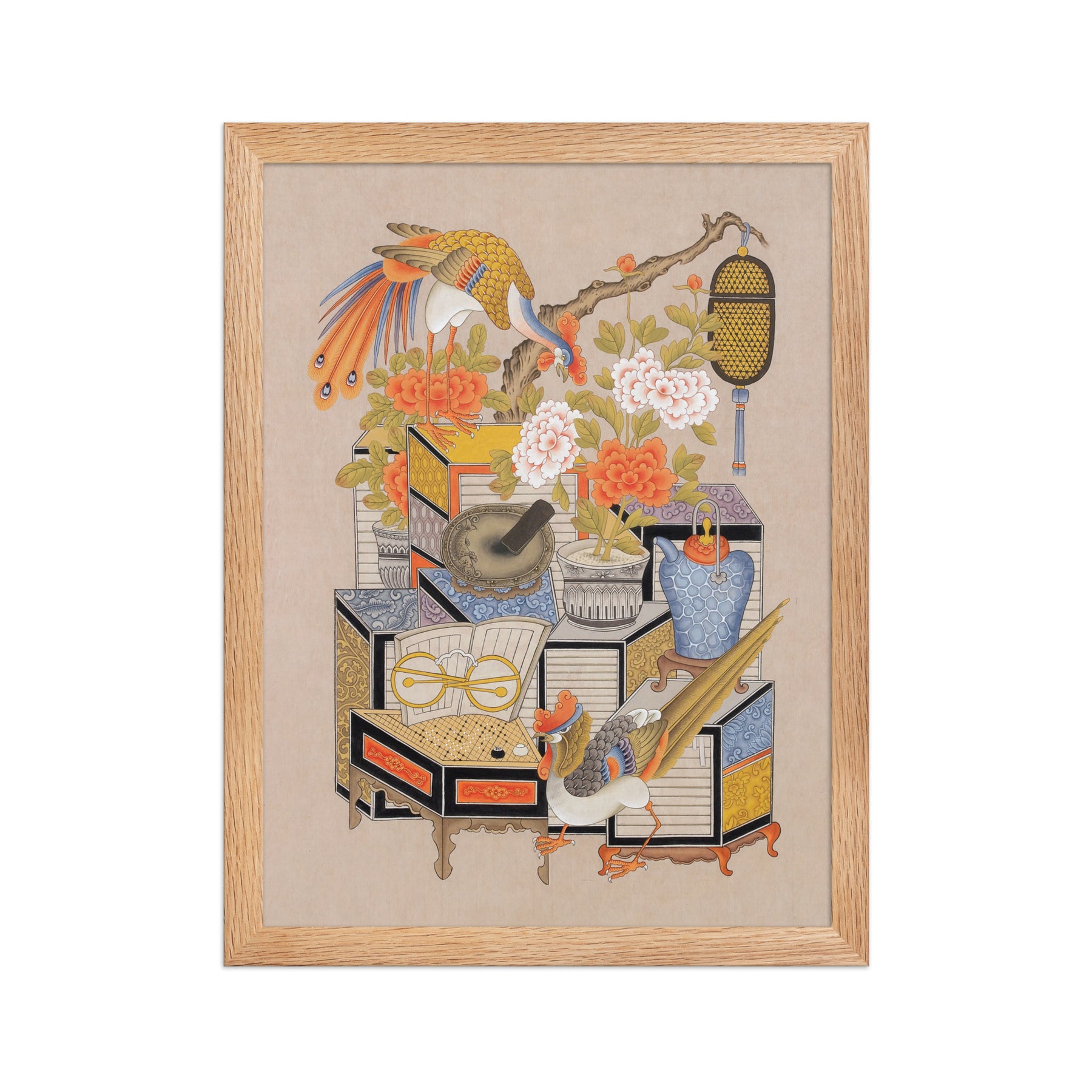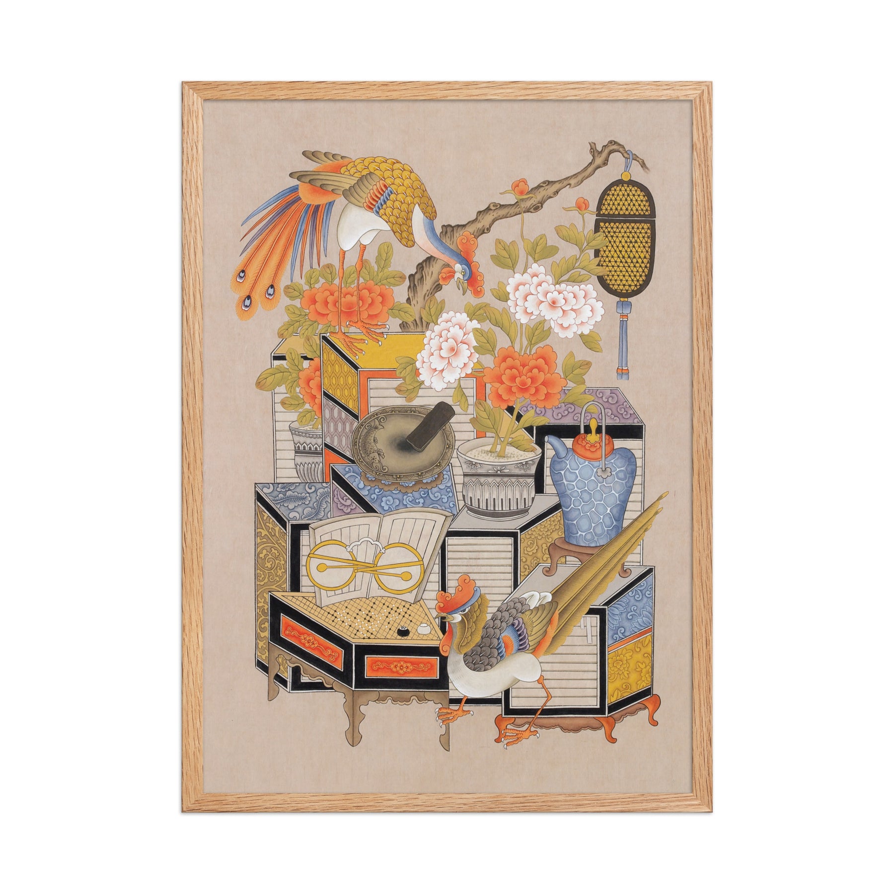 La tela incorniciata in legno di pino ha dei cuscinetti in gomma agli angoli, un supporto a parete preassemblato e una cornice sospesa per un'eleganza senza sforzo.